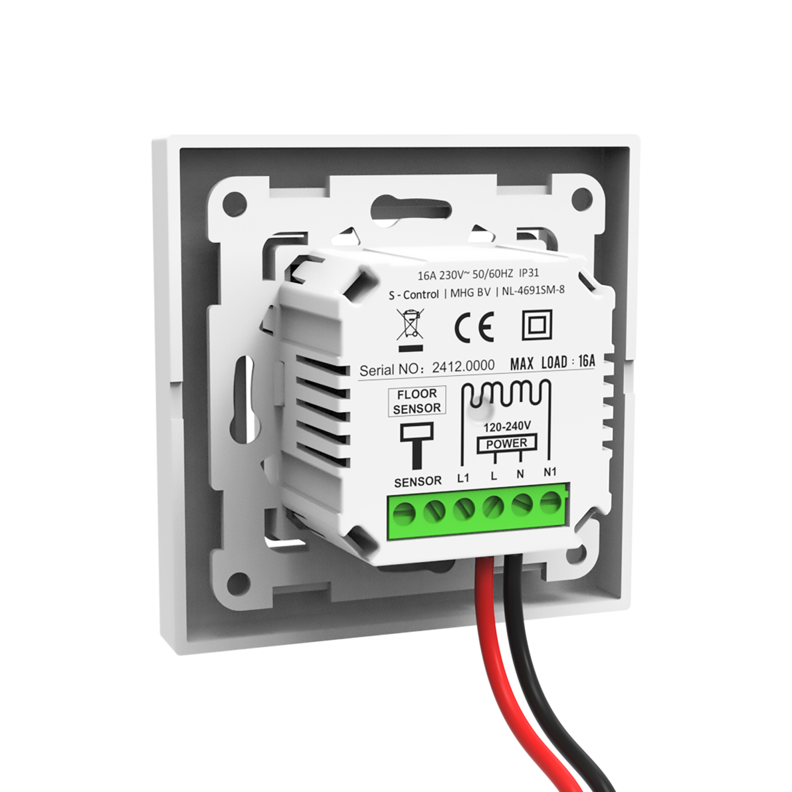 Tensiune de alimentare: 230VAC 50/60 Hz Max. Sarcina: 16 A (sarcina rezistiva) Putere în standby: : < 1W Interval de temperatură: 5-35°C Temp. podea. limita de protectie: 30°C Tip senzor de podea: 12k Capac: IP31 Aprobari: CE/UKCA Garantie: 2 ani Producator: MHG BV, Olanda
